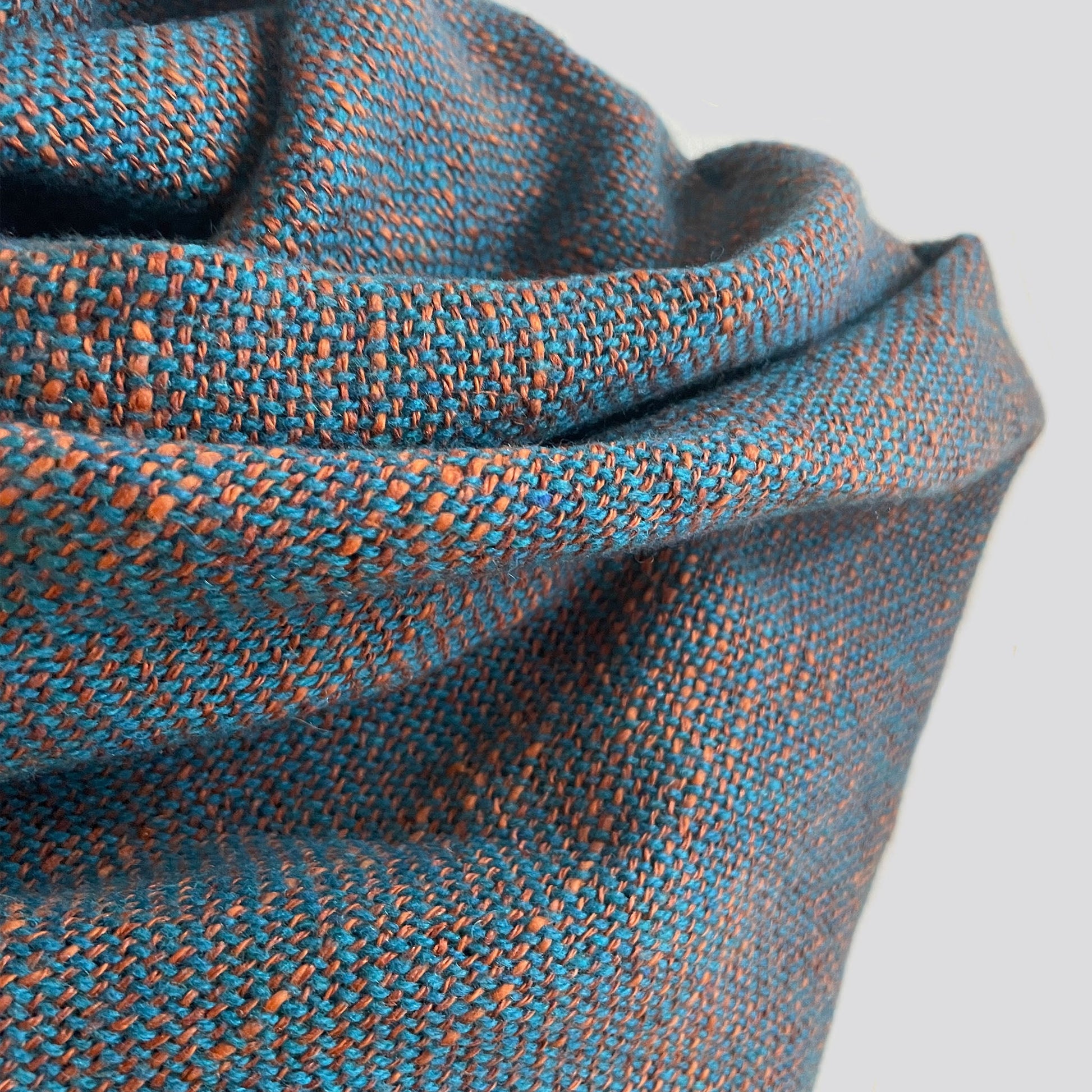 A light weight fabric woven from sustainably sourced merino wool and a vintage cotton-linen. The linen has a sheen and textured slubs giving the fabric a unique look and feel.