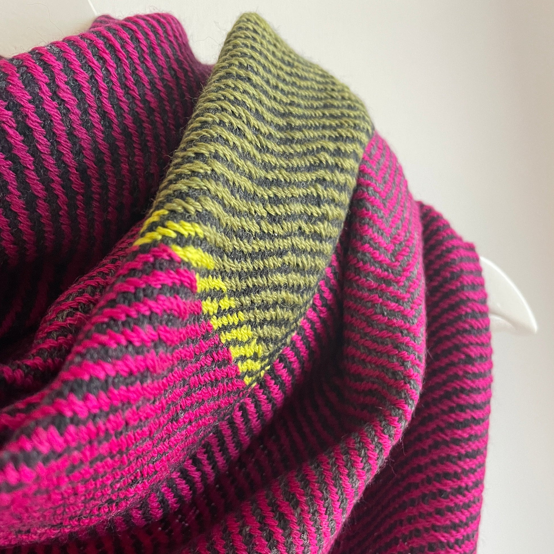 This design has a simple but effective loop through system to keep your scarf in place while you style it however you please!
