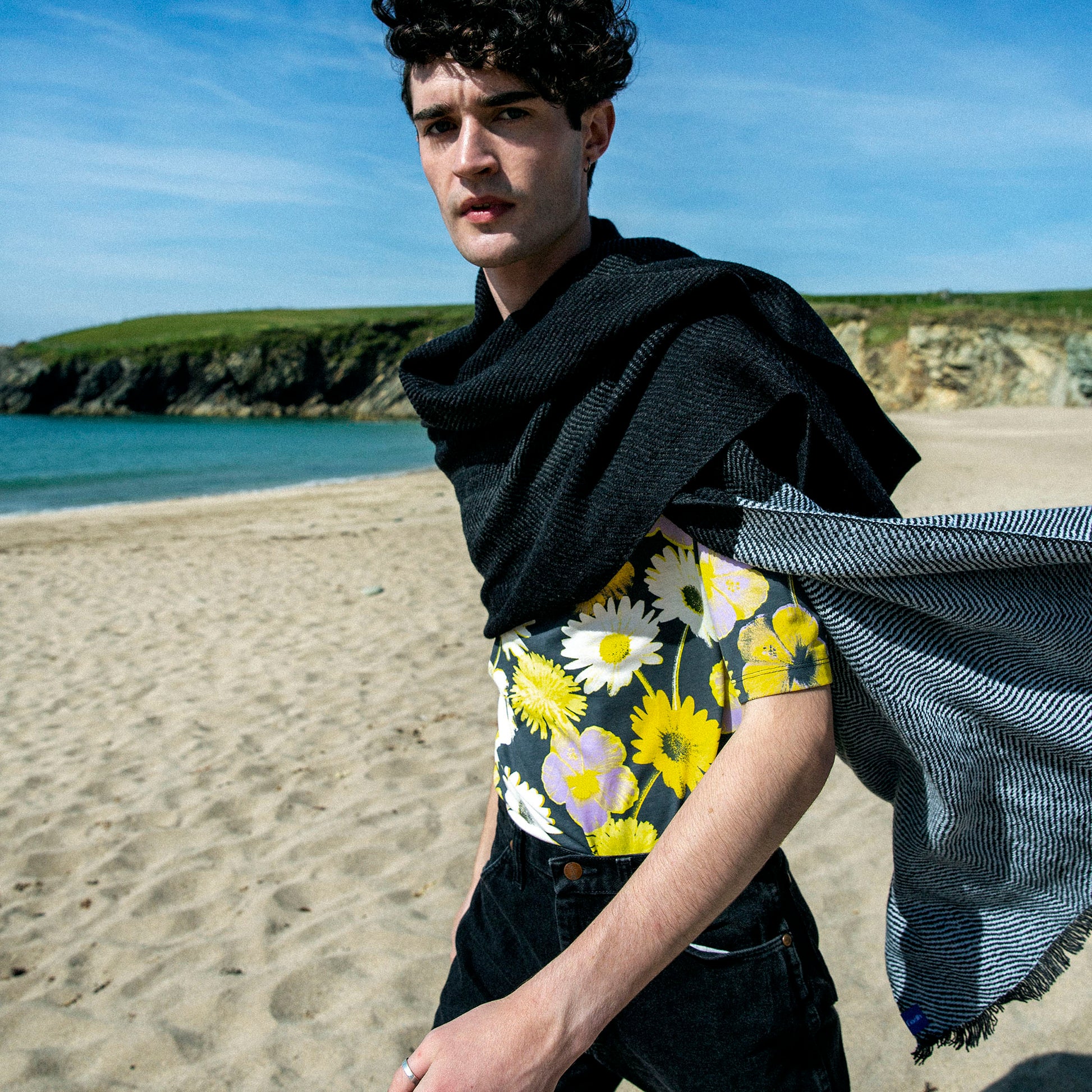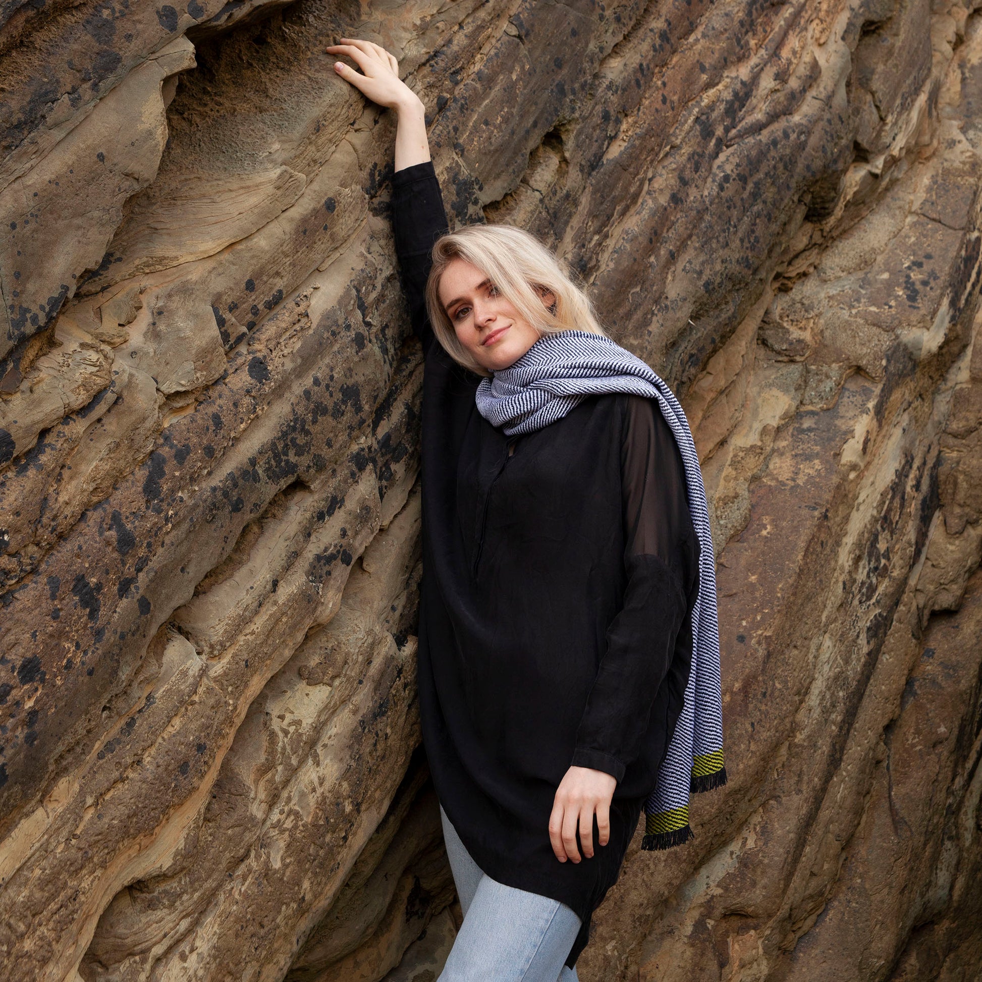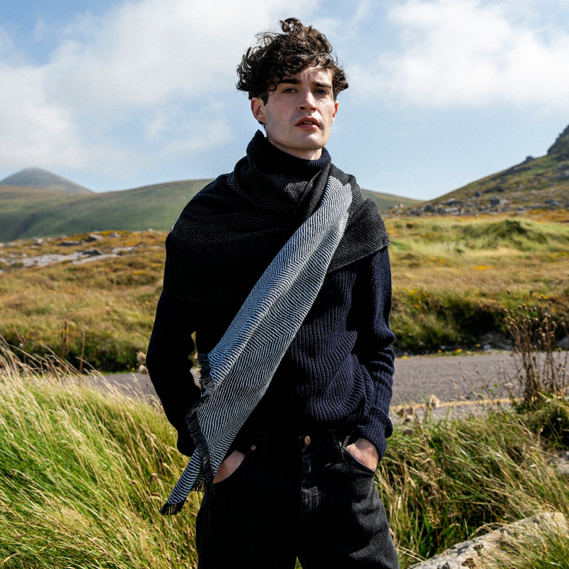 100% Merino (Silky Italian & Lambswool) large scarf/shawl inspired by lines and tones in rocks, plants and fish commonly seen along the Slea Head coastline.