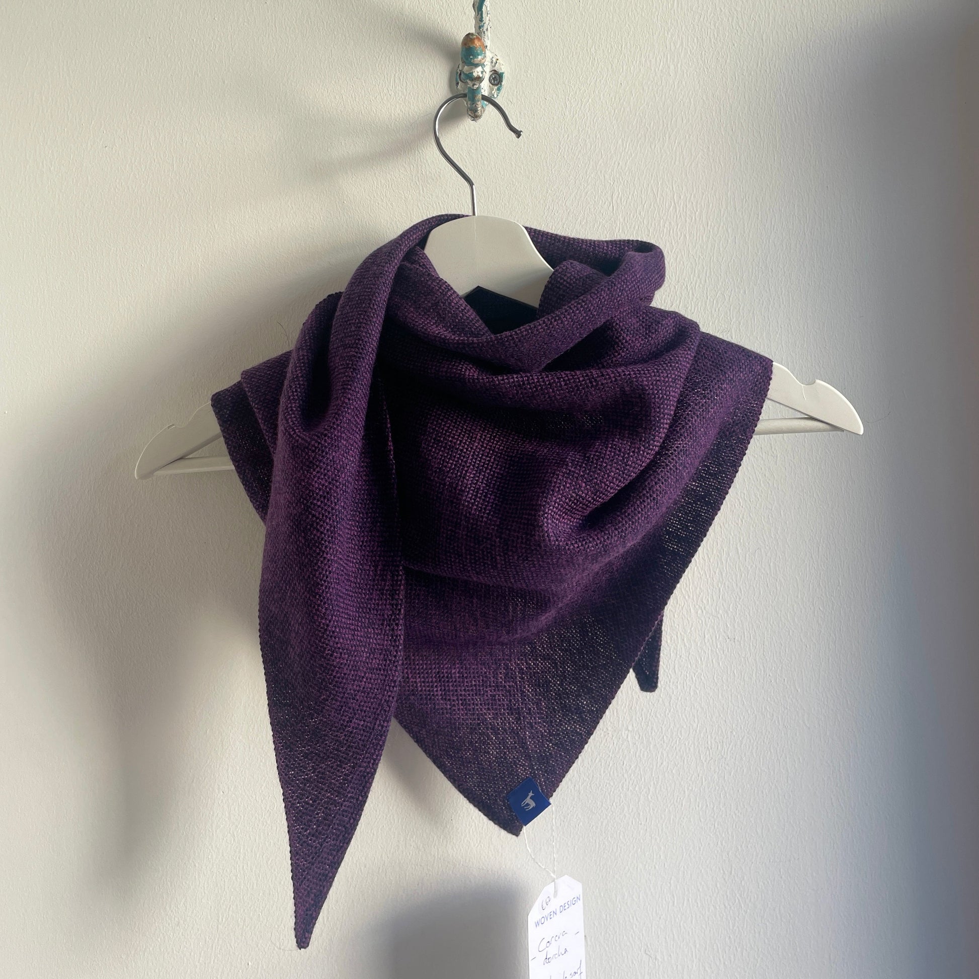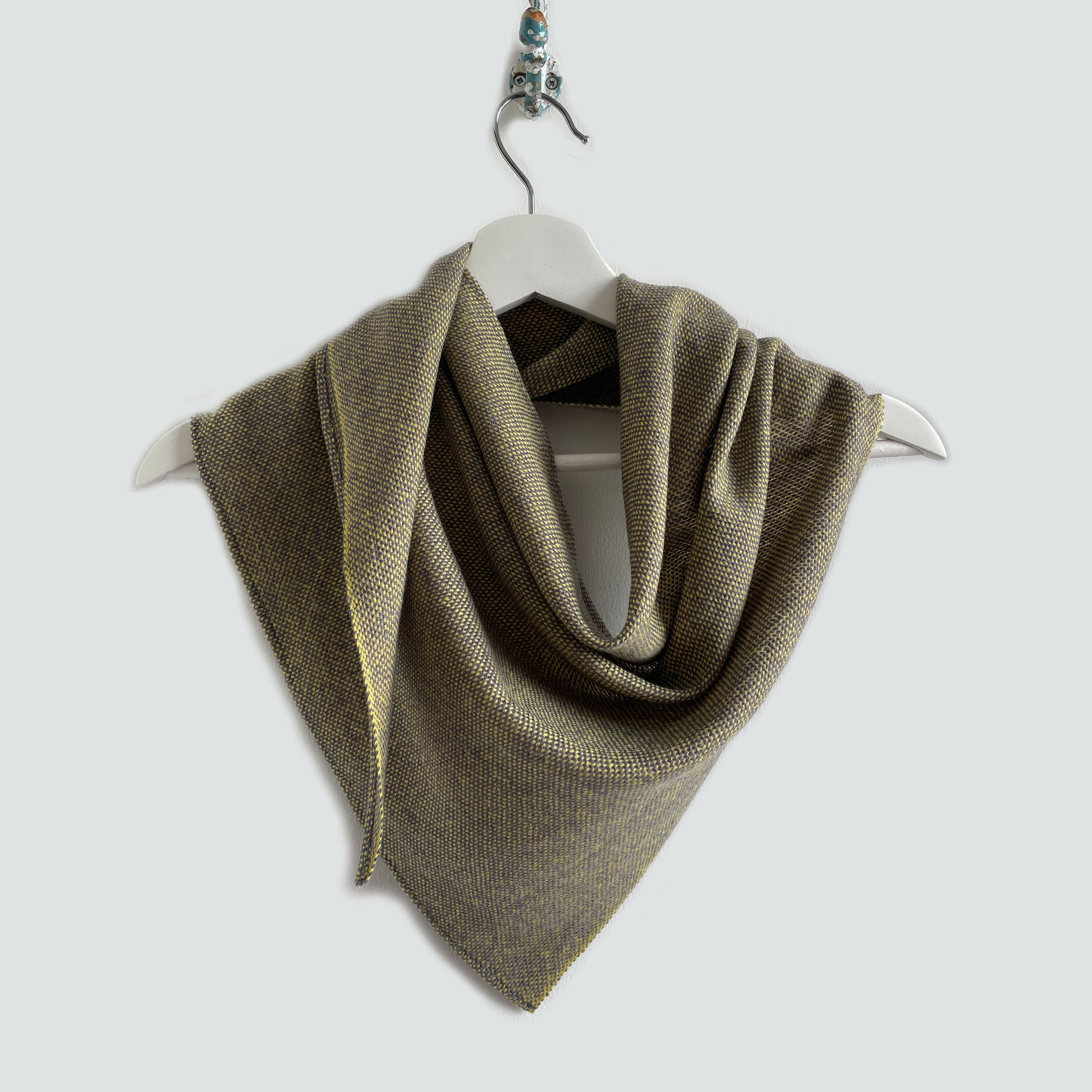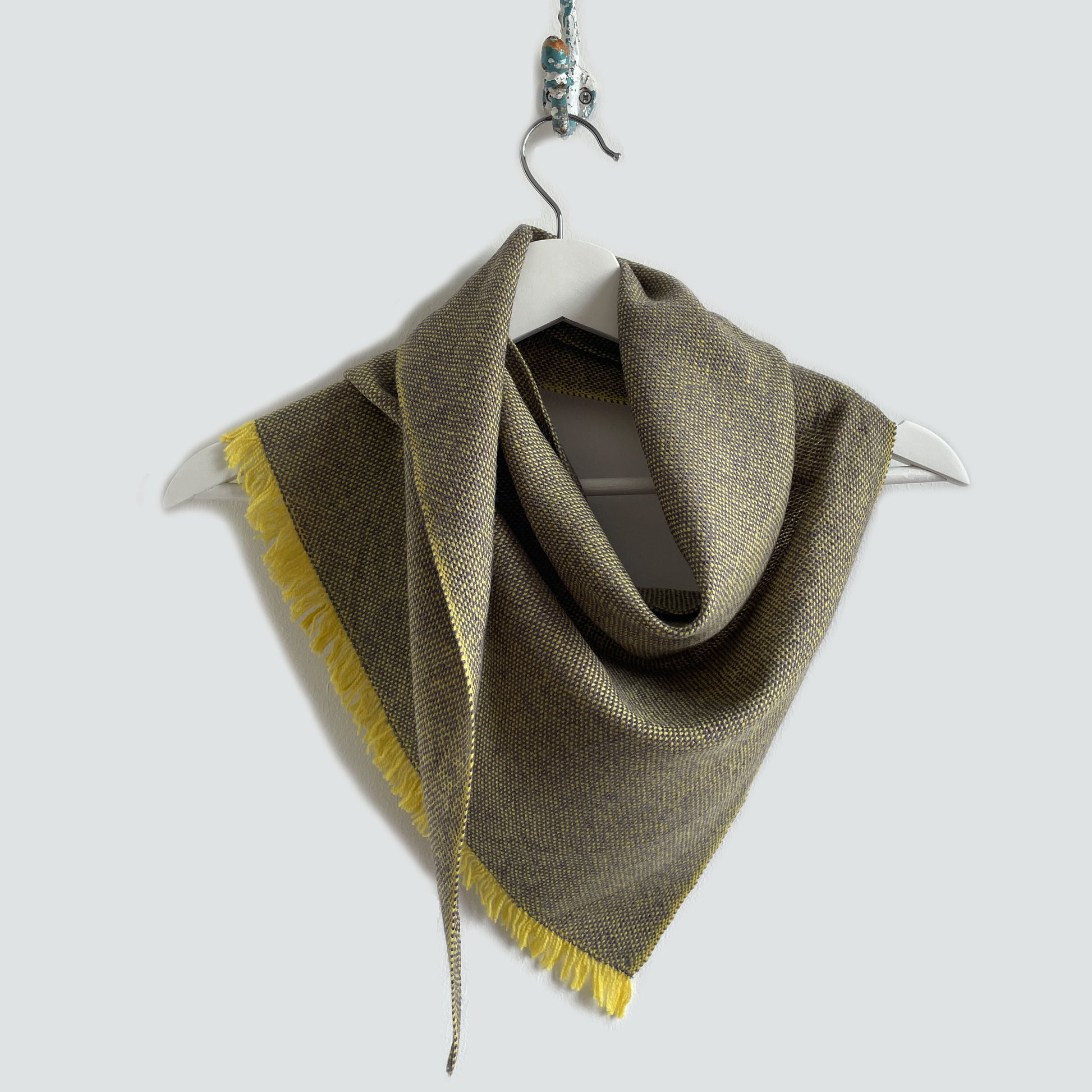 100% Merino (Silky Italian & Lambswool) medium triangle scarf inspired by the landscape of West Kerry. Silky merino wool woven across a fluffy lambswool in a plain weave.