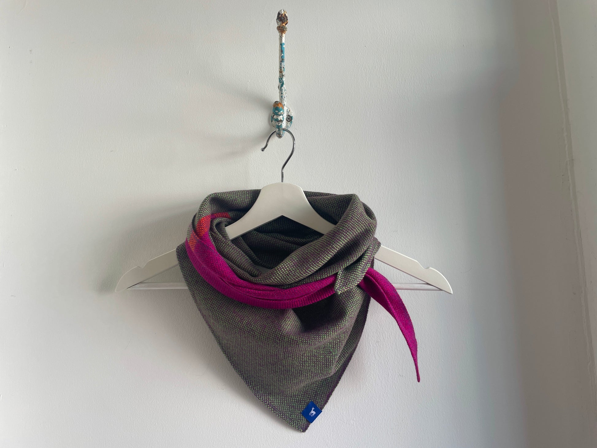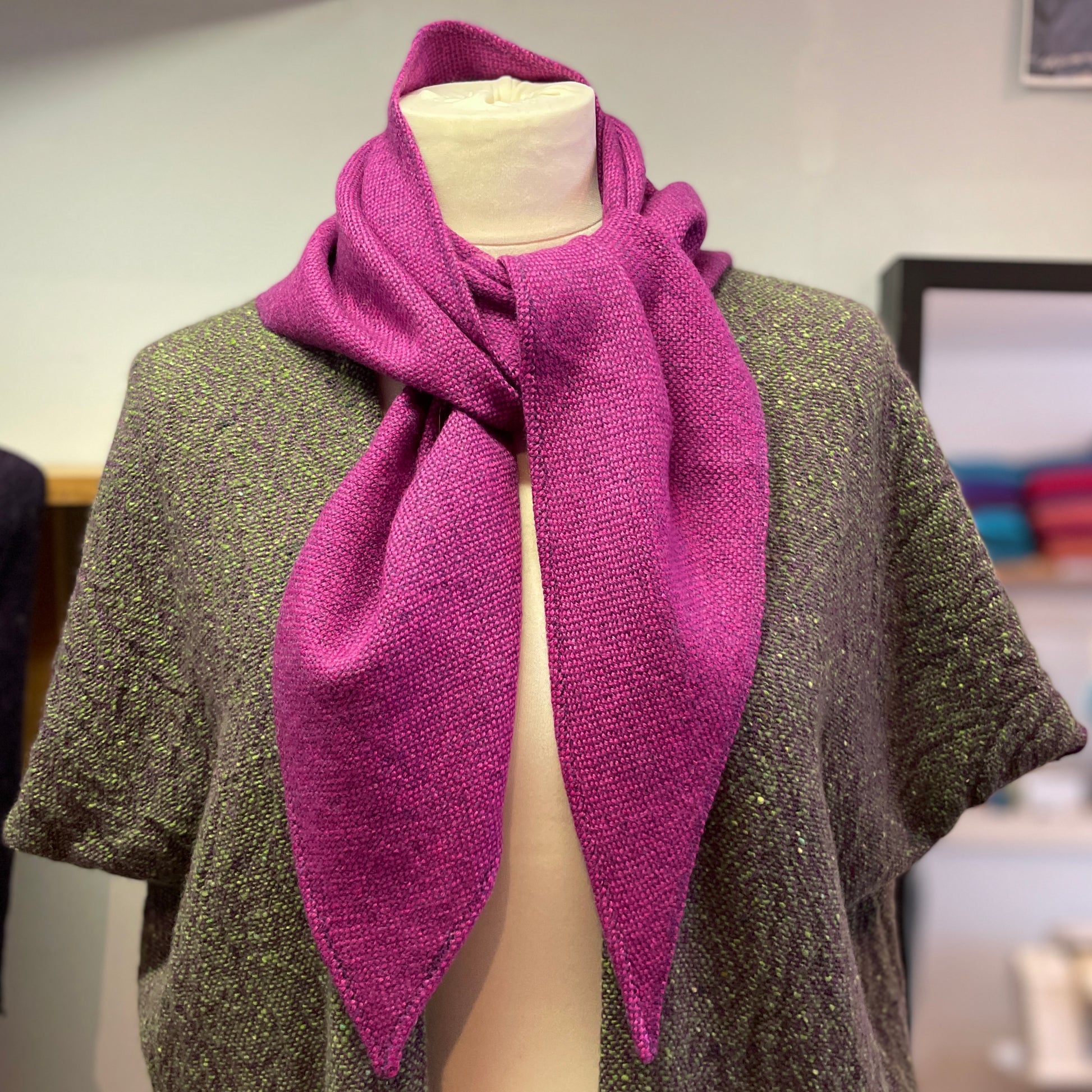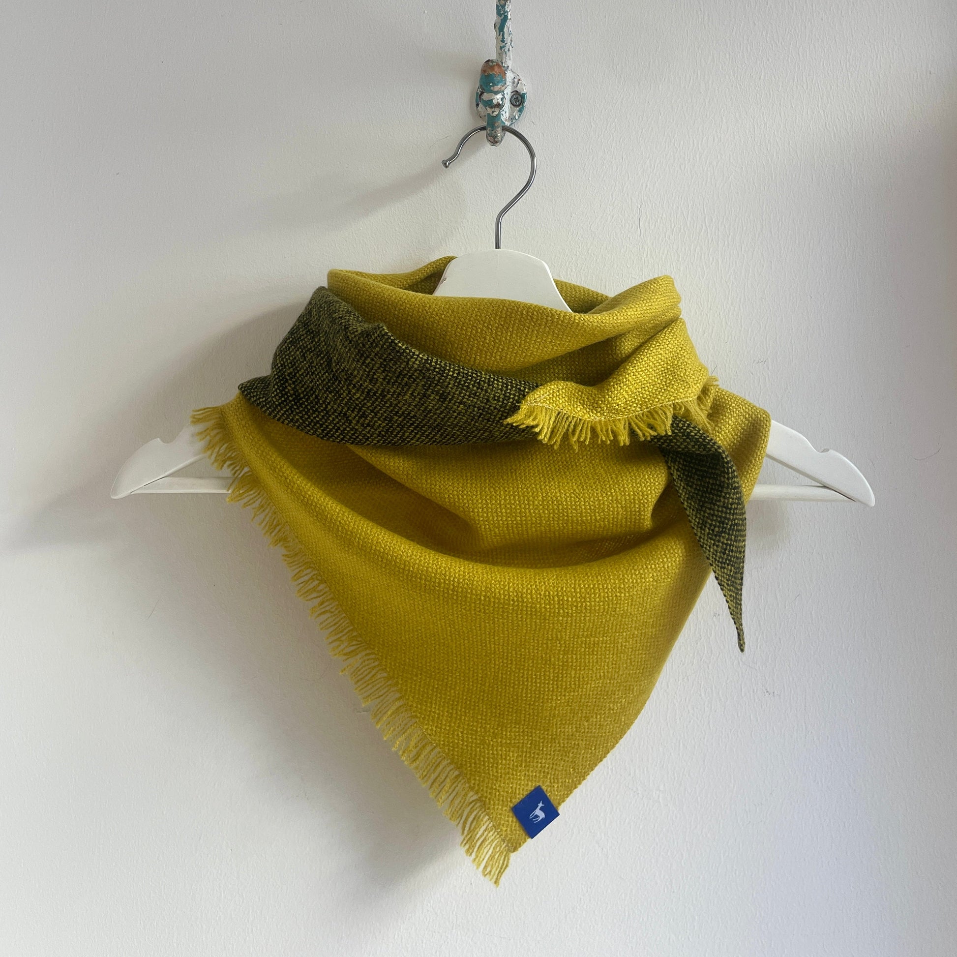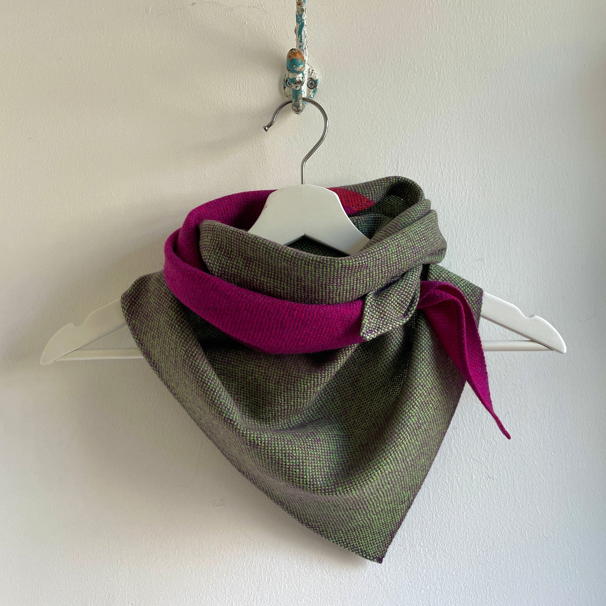 100% Merino (Silky Italian & Lambswool) medium triangle scarf inspired by the landscape of West Kerry. Silky merino wool woven across a fluffy lambswool in a plain weave.
